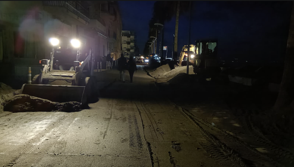 Perchè c’è una comunità che è isolata: la ferrovia non funziona, e i pullman viaggiano come possono, mezzo paese non ha luce, l’altro mezzo non ha acqua. Le scuole superiori Sono a Santa Teresa o a giardino, per entrambe le strade sono interrotti. Pazienza, ci si penserà a tempo debito. Sul lungomare, dalla mattina al tardo pomeriggio, totalmente al buio lavorano incessantemente i trattori ed i Bobcat per liberare la strada dalla sabbia il più presto possibile, in maniera che i locali possano fare la conta dei danni e iniziare ad organizzarsi per la stagione estiva. Sempre che ci sia una stagione estiva.