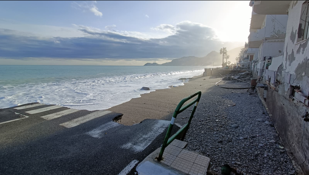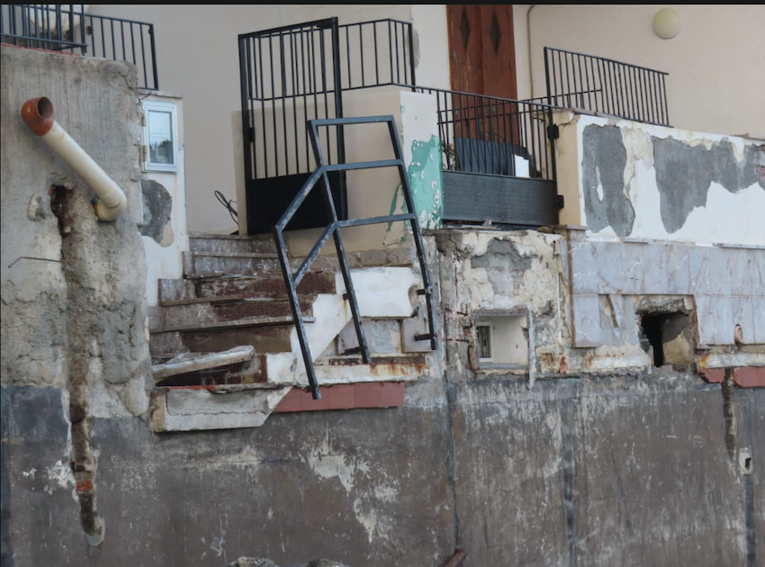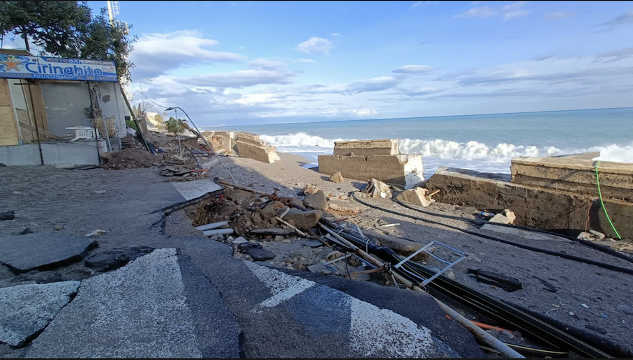MESSINA. Ci vuole un notevole sforzo di immaginazione, ed un’altra tanto grande sospensione dell’incredulità, anche solo per iniziare a capire quanta energia cinetica le onde abbiano scaricato sul litorale di Letojanni per sbriciolare letteralmente, e poi fare scomparire, un muro di 4 metri e l’intero scatolato che supportava la strada, lasciando a nudo le fondamenta del palazzo, le “case bianche”, ultimo avamposto del paese prima del campo sportivo e del cimitero, che per sicurezza sono state evacuate.