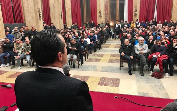 L’incontro tra Cateno De Luca e gli ultras del Messina (parecchie centinaia, il salone delle bandiere era pieno come raramente lo si era visto) non è stato che un antipasto di quello che dovrebbe accadere da oggi alla prossima settimana, a partire dal faccia a faccia con l’attuale dirigenza, per finire con la pubblicazione del bando di affidamento dello stadio per 99 anni, che dovrebbe consentire alla prossima cordata interessata alle sorti dell’Acr Messina di mettere a rendita lo stadio San Filippo per un tempo congruo col ritorno economico necessario a togliere i giallorossi dalla palude i cui da dieci anni annaspa senza che all’orizzonte si veda una possibilità di cambiamento.