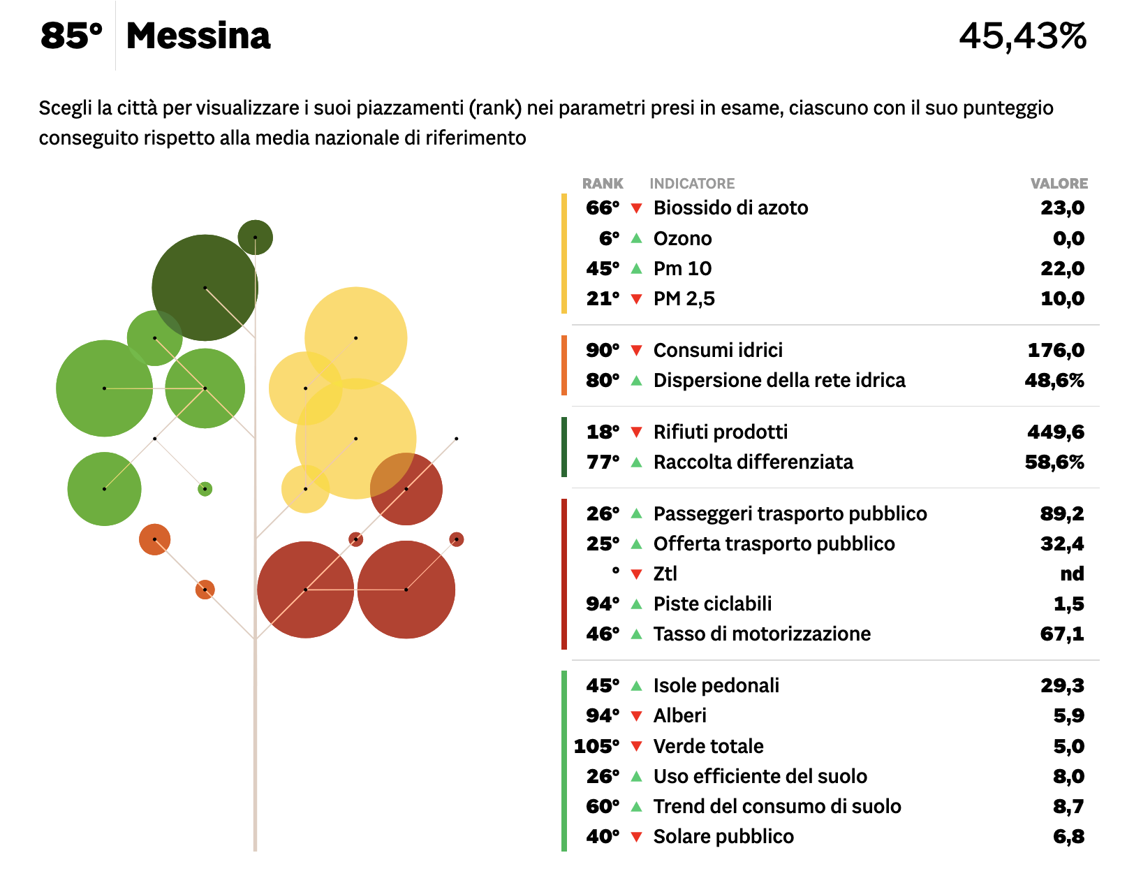 Qualunque siano i numeri, Messina, tra il 2024 ed il 2025, probabilmente proiprio a causa del tracollo verticale nella graduatoria degli alberi, perde posizioni nella classifica generale, passando dal 68mo all’85mo posto.