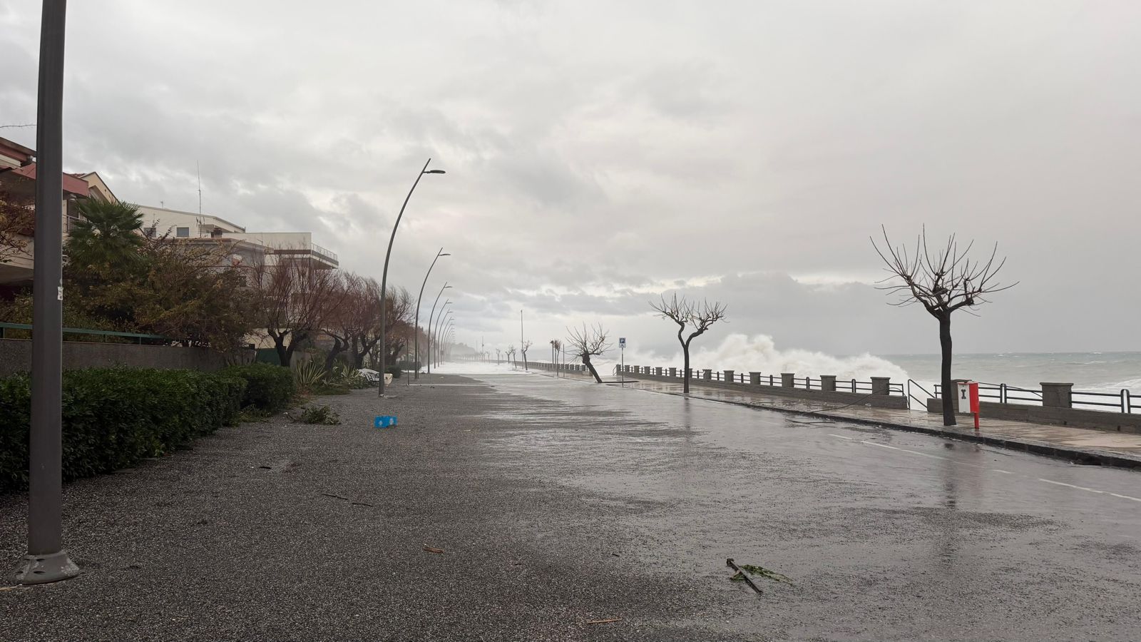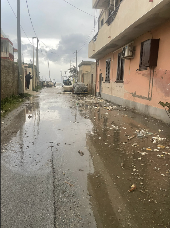 Giardini Naxos è stata la prima località nel messinese, già dal 19 gennaio, in cui il mare aveva fatto capire che c’era poco da scherzare. Complice anche la conformazione del litorale, per buona parte privo di spiaggia, i marosi hanno potuto imperversare infrangendosi contro le massicciate, scavalcando i muri e inondando le strade. Anche qui, devastazione generalizzata: per avere un’idea della portata basta guardare dove il mare ha portato a spasso per il lungomare i pesantissimi blocchi di cemento staccati dal muretto del lungomare.