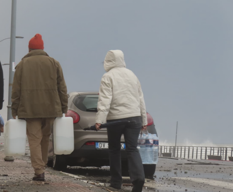 All’indomani della impressionante ondata di maltempo che ha determinato l’allerta rossa, il paese ne è uscito devastato. Tutti i negozi sono chiusi, i bar hanno le saracinesche abbassate, solo qualche bottega, con l’elettricità alimentata da piccoli generatori, è aperta: tutta la “vita” si concentra sulla via Regina Margherita, la statale 114, perchè il lungomare è inagibile e interdetto alla circolazione, anche pedonale. Non che ci sia tutta questa voglia di stare all’aperto.