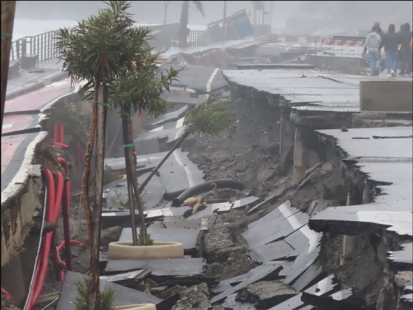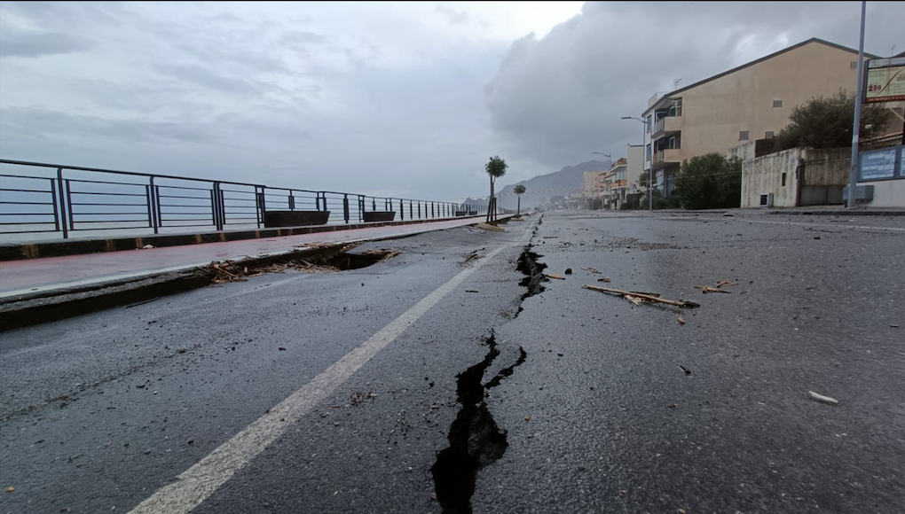 MESSINA. Più che da una mareggiata, Santa Teresa di Riva sembra essere stata colpita da un terremoto: un lungomare crollato per un terzo della sua lunghezza, una strada letteralmente tranciata in due per trenta metri, condotte e sottoservizi sbriciolati, una nottata e una giornata intera senza acqua, nè luce e nemmeno gas.