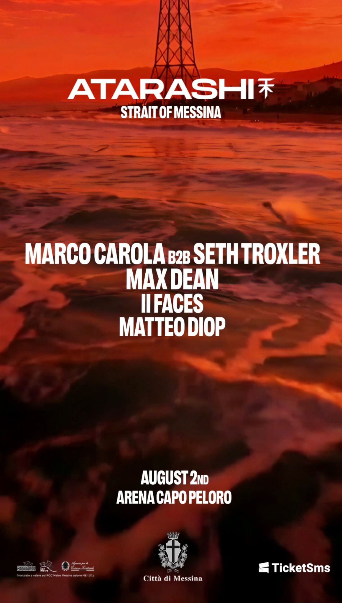 MESSINA. Atarashi annuncia la line-up ufficiale dell’evento, che si terrà sabato 2 agosto 2026 all’Arena Capo Peloro di Messina, e si presenta come il primo festival internazionale di musica elettronica in città, con 8 ore di musica al tramonto in riva allo Stretto, in una delle cornici naturali più suggestive del territorio.