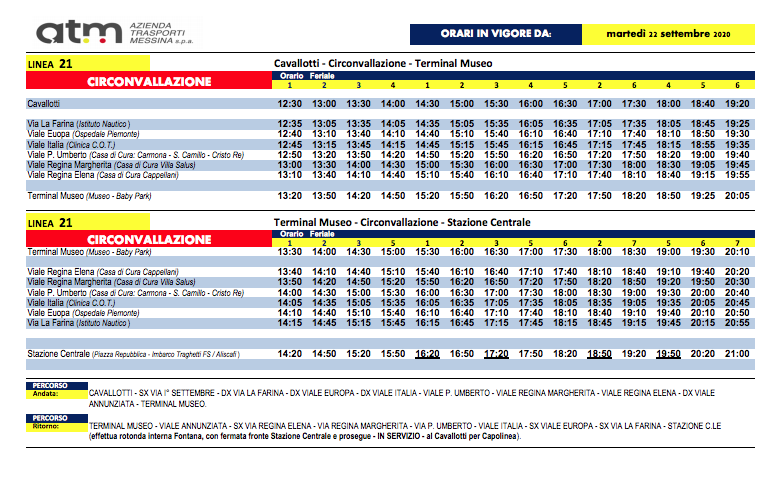 MESSINA. Comincia domani il nuovo corso dell’Atm, con l’entrata in vigore dell’orario invernale. In questo articolo tutti in dettagli, di seguito le tabelle e gli orari di tutte le linee