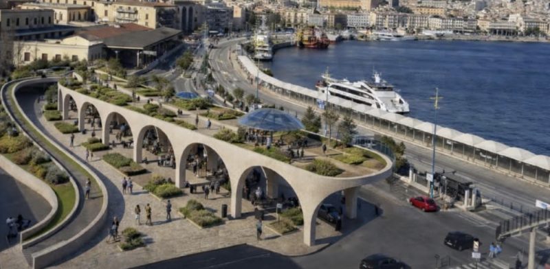 Il progetto prevede la demolizione degli edifici pericolanti, la realizzazione di un parco urbano multilivello e la costruzione di una terrazza affacciata sullo Stretto. Centrale anche la valorizzazione della Real Dogana, “che diventerà il punto di connessione tra waterfront e città”.