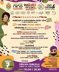 Appuntamento dedicato alla rassegna per tutta la famiglia nel pomeriggio di domenica, 8 marzo, alle 18.30, al Teatro dei 3 Mestieri con “Il Circo delle scelte coraggiose” di Delia Oddo. Mentre per gli appassionati di musica da camera l’associazione musicale Vincenzo Bellini di Messina vi aspetta nel pomeriggio di sabato, 7 marzo, al Palacultura alle ore 18.30, con “Ennio Morricone – Inseguendo quel suono“: uno spettacolo in cui il maestro romano viene raccontato dalla voce del suo biografo Alessandro De Rosa accompagnato da Fausto Beccalossi alla fisarmonica e Claudio Farinone alla chitarra.