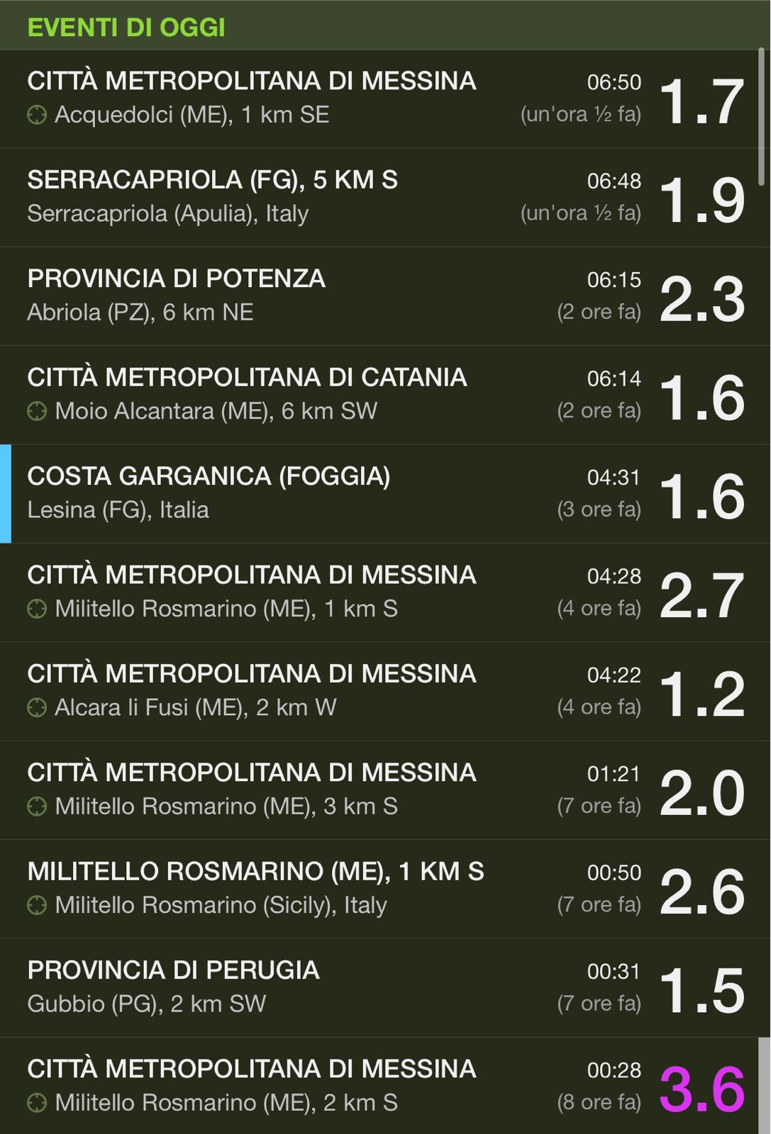 Lo sciame si è fatto sentire a partire da ieri sera, con una scossa alle 22:45 di magnitudo 3.0 e una di 2.6 intorno alle 23. Nella notte, inoltre, altre scosse hanno raggiunto magnitudo 2.6 e 2.7, per poi placarsi in mattinata.