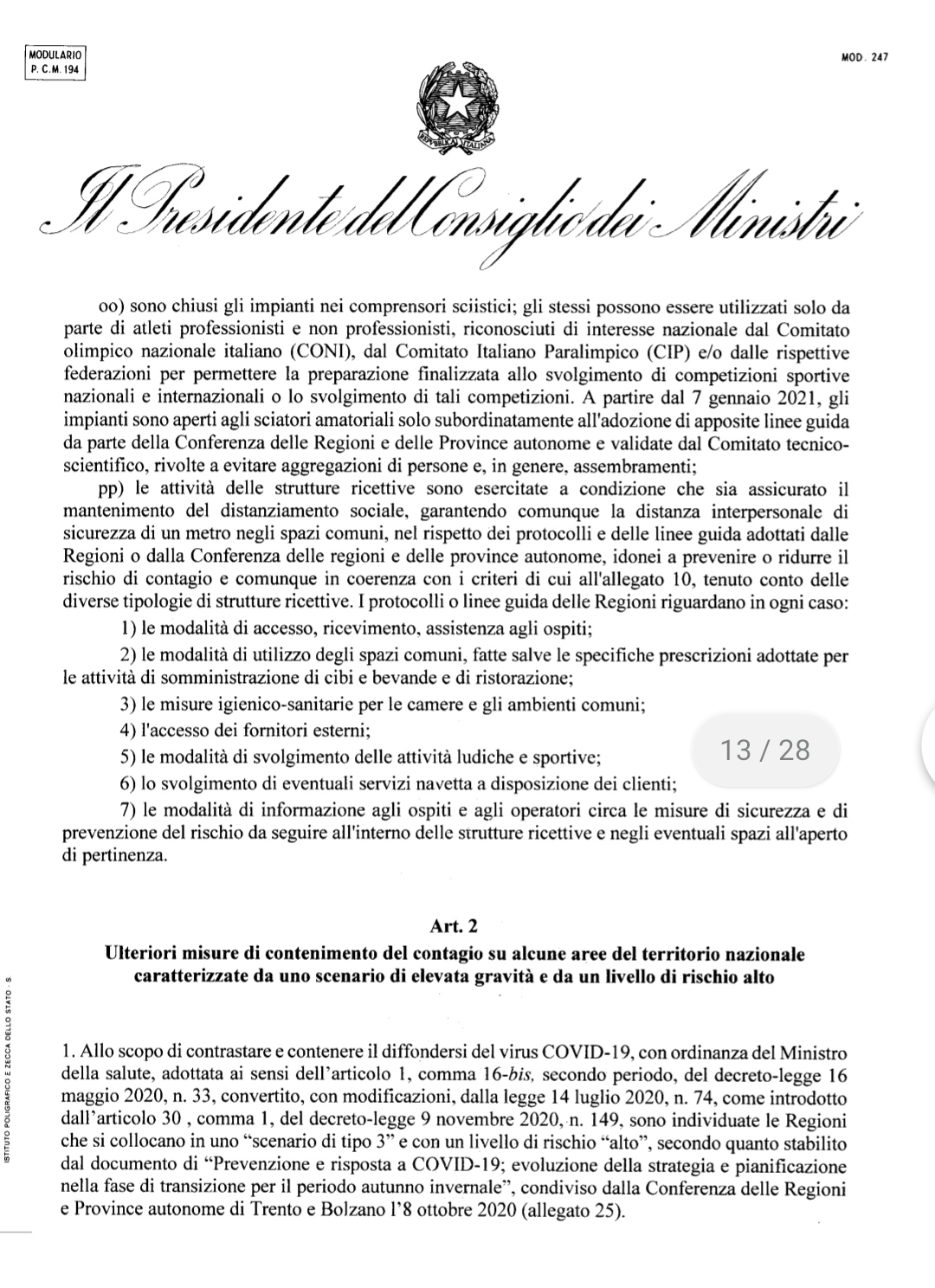 ROMA. E’ uscito il nuovo dpcm per le festività natalizie, firmato dal presidente del Consiglio dei Ministri, Giuseppe Conte, e annunciato ieri sera durante una conferenza stampa. Come anticipato dal premier, tutte le Regioni per Natale saranno “gialle”.