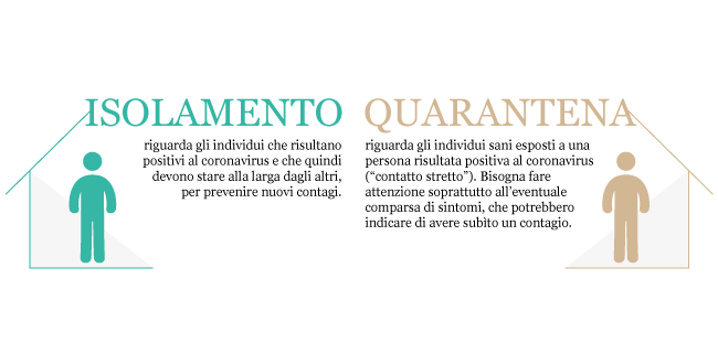 Infatti i soggetti che risultano positivi devono sottoporsi a isolamento, quindi evitare qualsiasi contatto per prevenire nuovi contagi. Chi invece è stato a contatto stretto con un caso risultato positivo dovrà essere sottoporsi a quarantena. In questo caso i soggetti devono isolarsi stando soprattutto attenti a possibili sintomi.