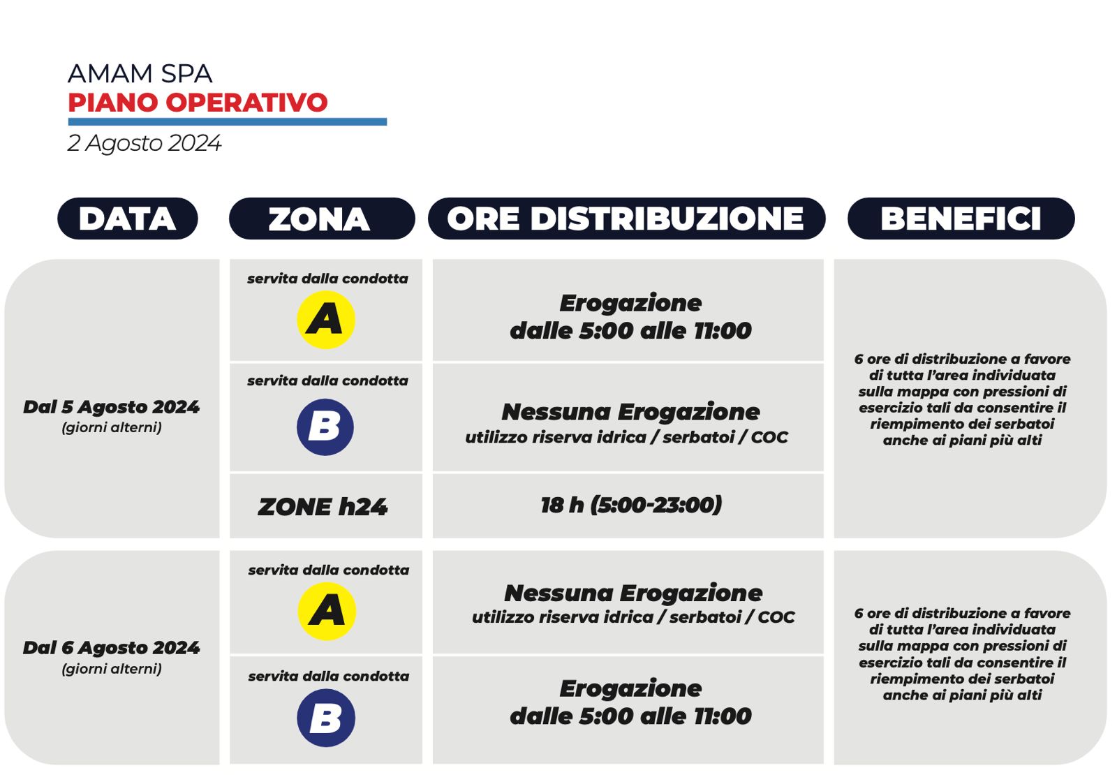 In questi giorni, quindi, il Comune ha lavorato per individuare e mappare le zone in difficoltà, dividendole in due: Zona A e Zona B. «Questo per porre in essere una soluzione ottimale», ha commentato il primo cittadino, che ha anche annunciato un incremento delle autobotti: già da oggi 1 in più e dalla prossima settimana 4 in più, portando il totale dei mezzi a 14. Altro intervento, infine, è stato adottato all’interno della struttura del COC, dove è stata migliorata la gestione delle segnalazioni con un sistema di smistamento delle chiamate tramite un software.