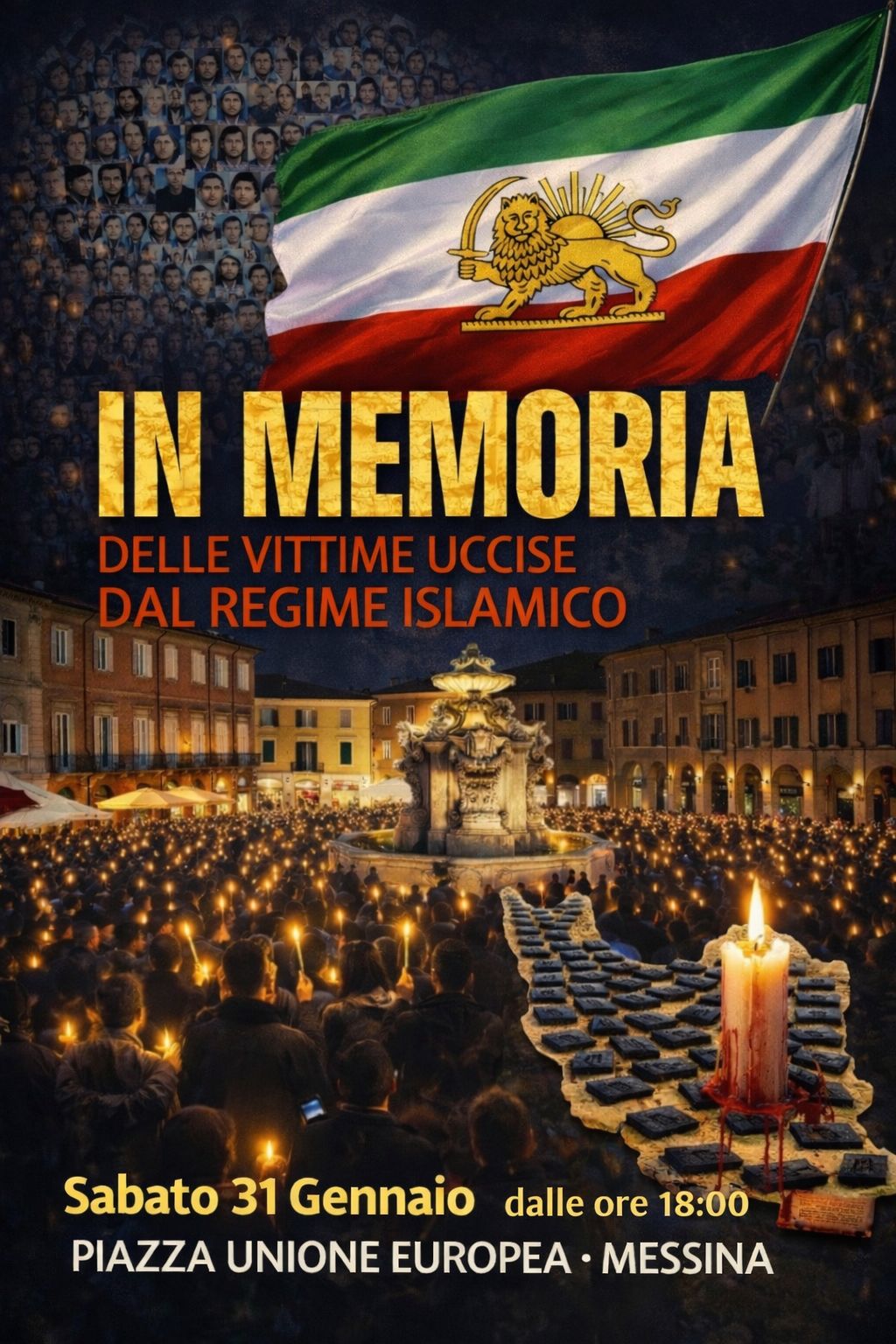 MESSINA. Si terrà oggi pomeriggio, a partire dalle 18, a piazza Unione Europea, una commemorazione del popolo iraniano presso il Comune di Messina, per ricordare le vittime uccise dal regime islamico.
