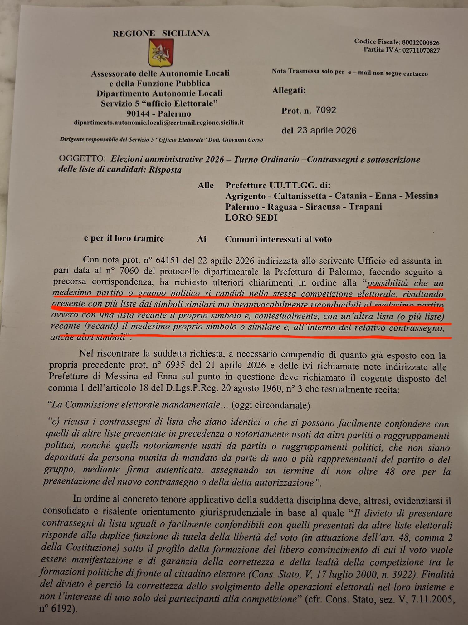 Perchè, oltre alla questione delle firme, contestatissima dalle opposizioni (col candidato del centrodestra Marcello Scurria che ha annunciato azioni e iniziative) c’è il concreto pericolo che intervenga anche quella della “possibilità che un medesimo partito o gruppo politico si candidi nella stessa competizione elettorale, risultando presente con più liste dai simboli similari ma inequivocabilmente riconducibili al medesimo partito, ovvero una lista recante il proprio simbolo e, contestualmente, con un’altra lista )o più liste) recante il medesimo proprio simbolo o similare e, all’interno del relativo contrassegno, anche altri simboli”. Esattamente il caso di specie delle quindici liste riconducibili a Sud chiama Nord.