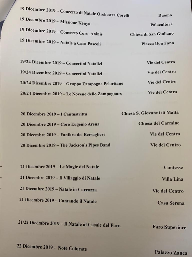 «Fra gli appuntamenti principali – sottolinea l’assessore Scattareggia – il ritorno della tradizione du “pagghiaru”, a Bordonaro». Non mancheranno spettacoli con le zampogne e i tamburelli, sfilate, concerti, eventi per i più piccoli e un evento dedicato al piccolo Dylan (al centro commerciale di Tremestieri).
