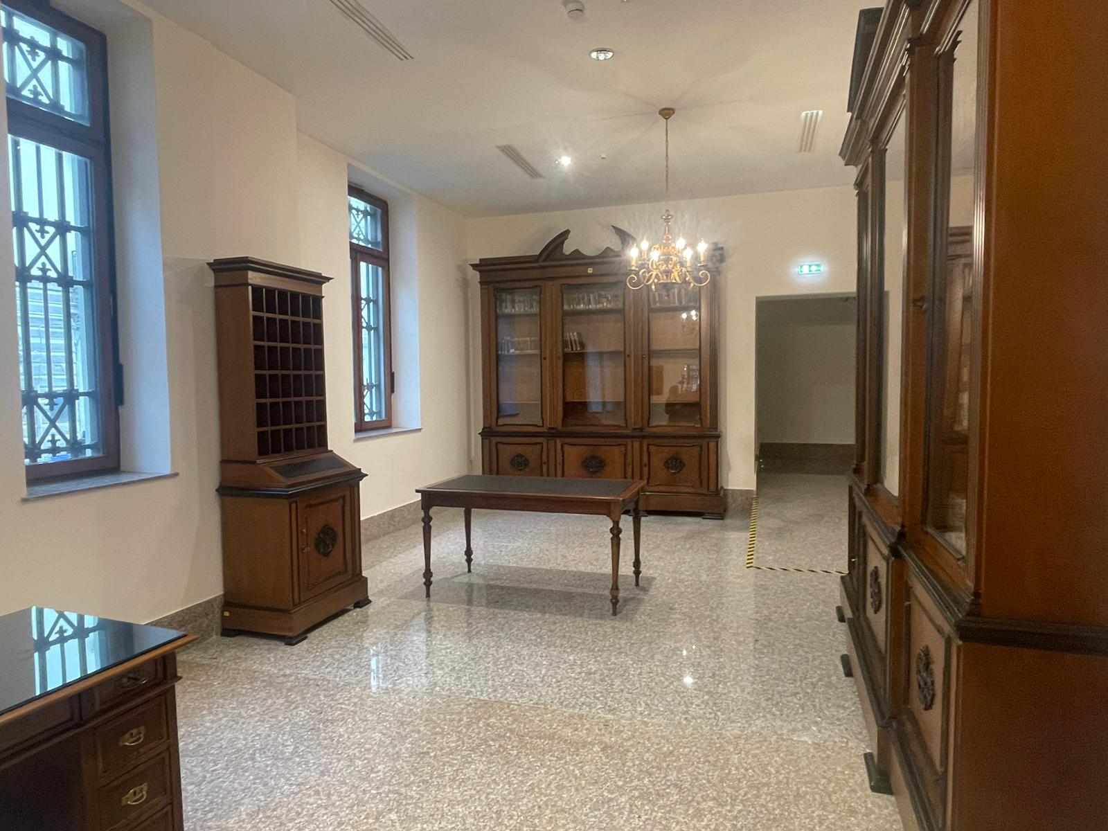 Il tour è proseguito quindi nel gabinetto di lettura (con ingresso indipendente), i cui mobili sono stati restaurati. È una delle diverse aree in cui è diviso l’edificio, che ospiterà anche una zona bar/ristoro, gli uffici amministrativi per la gestione della sala lettura, uno spazio destinato all’associazione Gabinetto di lettura (sempre al primo piano) e una zona museo su due livelli con ingresso da via Natoli: ci saranno due pinacoteche e vari reperti. Sempre al secondo piano (dove un tempo c’era gli alloggi) spazio ai centri di ricerca e a un circolo per eventi di rappresentanza.
