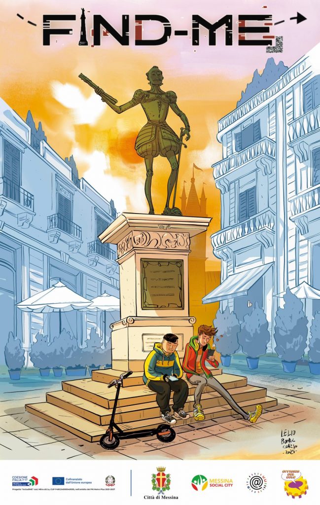 Progetto scritto da Siro Bizzi: “‘Find Me’ racconta la storia di due amici, Tommaso e Salvo, che si ritrovano coinvolti in una misteriosa avventura che li condurrà attraversando i luoghi simbolo della città – dalla Lanterna del Montorsoli alla Messina sotterranea – in un viaggio che unisce realtà aumentata e miti e leggende locali”.