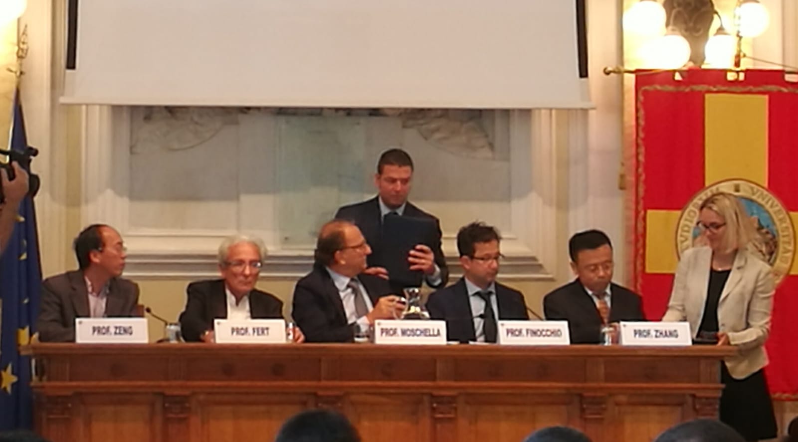 L’obietto dell’incontro è stato mostrare come è possibile il passaggio dalla ricerca di base alla ricerca applicativa, fino ad arrivare al market, in presenza di ospiti come i professori Zeng e Zhang, responsabili dell’Istituto di Suzhou, e il professore francese Albert Fert, premio Nobel per la Fisica nel 2007 per la scoperta dell’effetto di magnetoresistenza nel 1988 e autore della lectio magistralis intitolata “The route from foundamental science to innovation”.