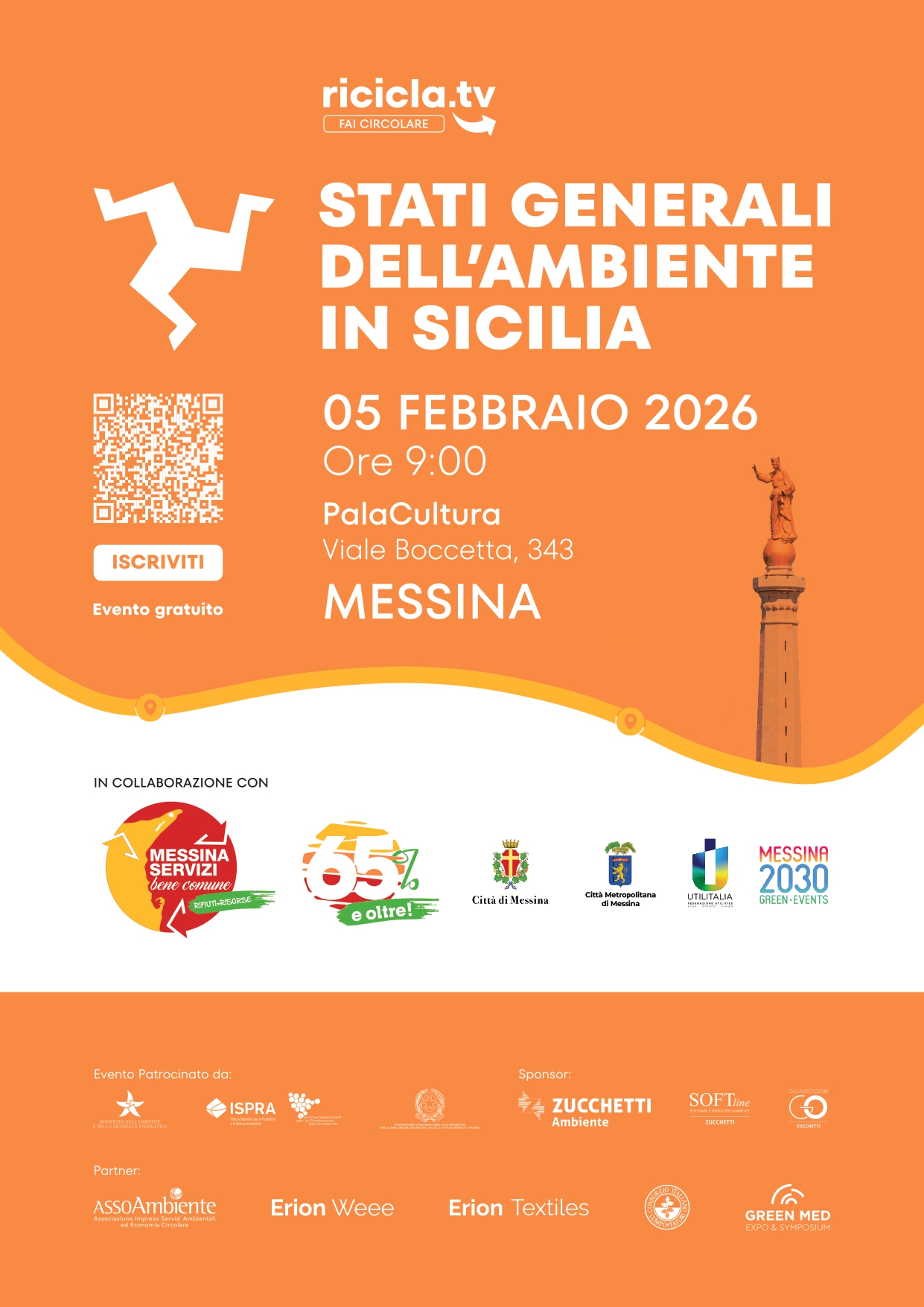 MESSINA. Messina ospita giovedì 5 febbraio, alle ore 9.30, al Palacultura Antonello, gli “Stati Generali dell’Ambiente in Sicilia”, terza tappa del tour 2025-26 promosso da Ricicla Tv nelle regioni del Centro-Sud Italia. Al centro dell’iniziativa, organizzata con Messinaservizi Bene Comune, i temi dell’acqua, della depurazione e degli interventi previsti in materia di dissesto idrogeologico, insieme alle politiche regionali sui rifiuti, alle filiere dell’economia circolare e alle prospettive del Pnrr. Nel corso della mattinata sarà anche presentata la terza edizione di “65% e oltre”, il format con cui Messinaservizi Bene Comune ogni anno illustra i risultati sulla raccolta differenziata di una delle città più virtuose del Sud e dell’intero Paese.