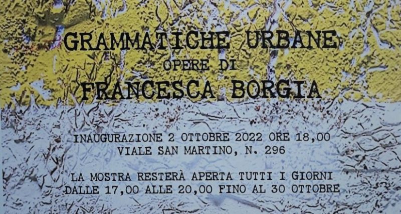 MESSINA. Il 2 ottobre 2022 si è inaugurata a Messina la mostra di Francesca Borgia dal titolo “Grammatiche Urbane” in ricordo del momento drammatico del 1 ottobre 2009 a Giampilieri. Francesca Borgia organizza le sue mostre e le sue installazioni in luoghi e siti chiusi, luoghi che per incuria, abbandono, difficoltà commerciali e contestuali sono chiusi da tempo ridando loro dignità, attraverso l’arte, di appartenenza funzionale alla comunità.