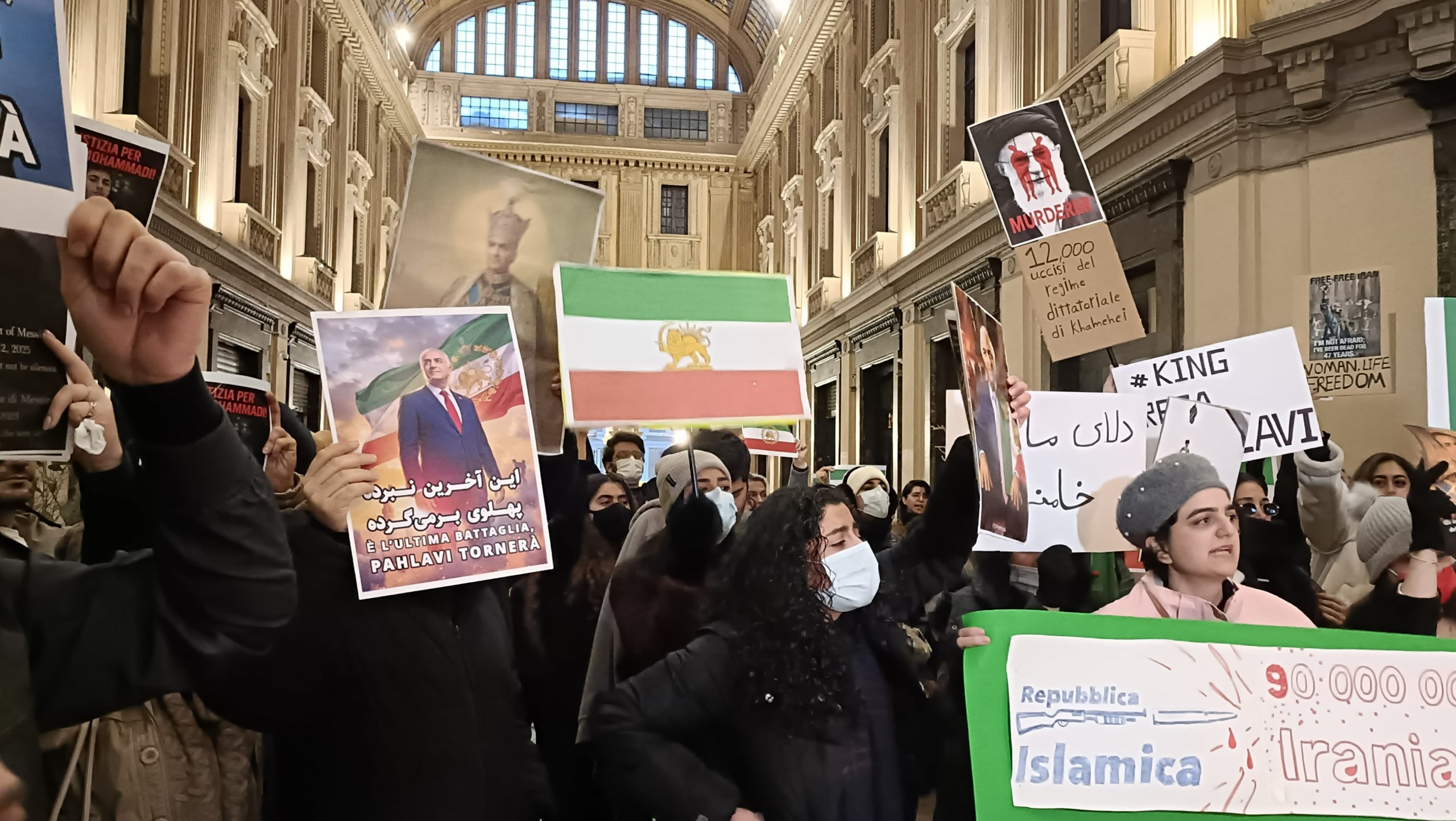Tutti gli slogan, urlati in lingua madre, sono stati condivisi dal centinaio di giovani accorsi in galleria Vittorio Emanuele per inneggiare alla caduta della Repubblica islamica, responsabile di 12mila uccisioni durante le protese, e 15mila arresti, per esprimere solidarietà ai manifestanti, e per ricordare i caduti sotto i proiettili della guardia rivoluzionaria, quell’Irgc (Corpo delle guardie della rivoluzione islamica), la forza militare paramilitare iraniana responsabile della sicurezza interna, cher i manifestanti chiedono sia inserita tra le associazioni terroristiche (attualmente è riconosciuta come tale da sole otto nazioni, tra cui Usa, Arabia Saudita, Bahrain, Svezia, Canada e Australia).