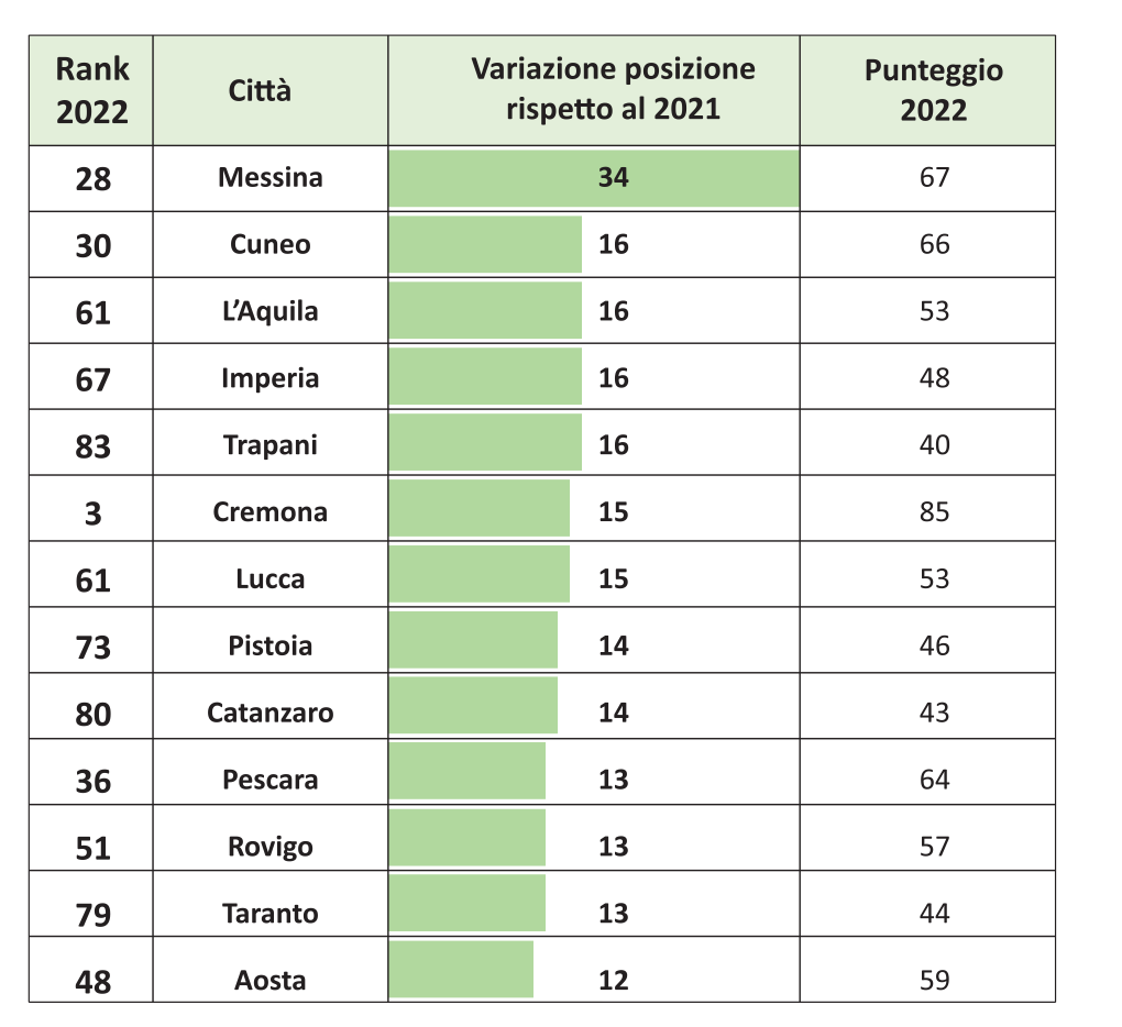 La Città dello Stretto nel giro di un anno nella graduatoria complessiva ha scavalcato 34 posizioni (dalla 62esima del 2021) portando uno dei tassi di crescita più significativi insieme a L’Aquila, Cuneo, Imperia e Trapani.