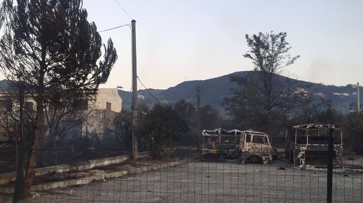 «Il “Mostro Arrivato dalle Colline” ha determinato paura, ha prodotto devastazione con gravi danni nel territorio – si legge in un comunicato – Le bellissime montagne e le campagne coltivate completamente divorate dal fuoco alimentate da un caldissimo scirocco. Alberi secolari di ulivo carbonizzati, alcune abitazioni e macchine bruciate dalle altissime fiamme. La “Pineta di Calamona” non esiste più, i pochi pini che erano ancora in vita, alberi secolari, sono stati distrutti dalle fiamme. È finito il bellissimo profumo che si respirava sotto l’ombra dei rami. Circa 70 pali in legno e cavo per circa 800 metri adibiti per trasportare le linee telefoniche completamente carbonizzati, lasciando 400 case senza telefono e senza linea Adsl. Le lingue di fuoco che volavano nell’aria hanno raggiunto il mare, dopo aver attraversato la strada statale 113/dir. in alcuni tratti. Grazie al personale preposto che hanno provveduto immediatamente a chiudere la strada statale 113/dir. da Tono a San Saba al transito dei mezzi non ci è scappato il morto. L’aria era irrespirabile, fumo nero e pericoloso avvolgeva il cielo. Con le prossime piogge consistenti che arriveranno, sicuramente, si verificheranno delle frane e potrebbero cadere sulla strada statale 113/dir», conclude il consigliere