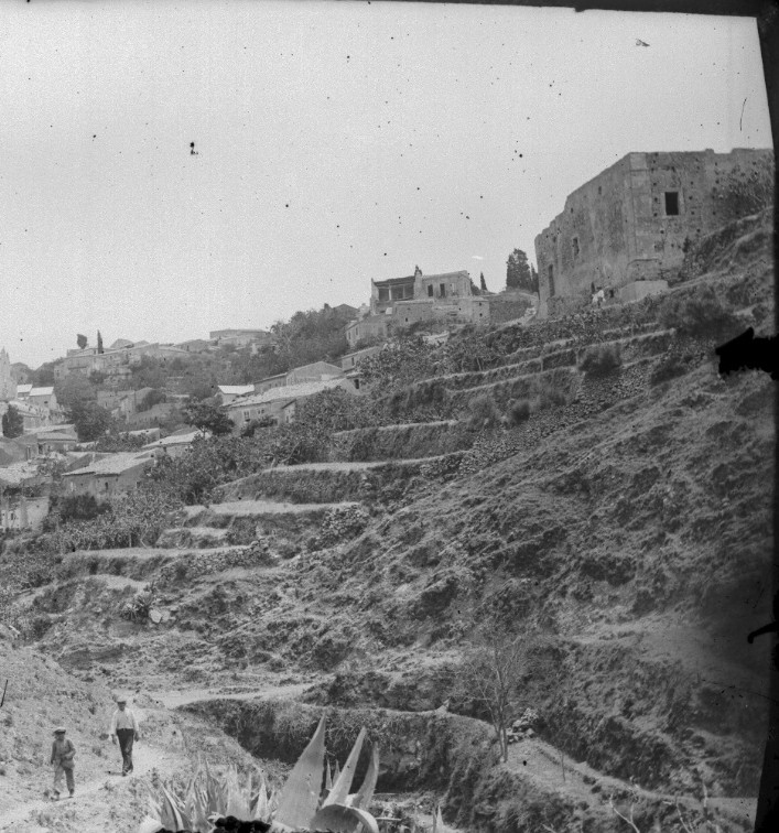 Fra il 1491 e il 1493, la cifra considerevole di diciotto once viene sborsata per adornare due chiese di Castanea. La prima commissione, effettuata dai marammieri della costruenda chiesa di San Giovanni, era indirizzata al pittore Pilli; l’altra, datata 6 maggio 1493, è così riportata nei documenti notarili: “Infine [vi è] l’importantissima commissione, datata 6 maggio 1493, [fatta] dagli onorabili Domenico de la Mendolia, Clementis e Silvestro de Perrono, abitanti del casale di Castanea […] in qualità di confrati e amministratori (magistris) della chiesa dell’Annunziata dei Disciplinanti di detto casale. L’artista si impegnava, per la somma di dieci onze d’oro (pagabili a rate), a costruire ed eseguire a proprie spese una immagine della sacratissima Annunziata con il libro in mano e con l’angelo, così come si suole fare (prout fieri solet), in lapide marmorea ed elevata. Il Freri doveva ultimare il complesso non oltre la metà del mese di agosto prossimo venturo; si sarebbe recato personalmente al casale (ad rurem ipsum) per trasportare le statue e collocarle nel luogo stabilito (apportare eas in loco per eos statuendo).” L’opera fu compiuta e il 7 settembre dello stesso anno Domenico de la Mendolia dichiarò spontaneamente di aver ricevuto dal maestro Antonello quanto pattuito. A distanza di cinquecento anni esatti, quasi fosse un richiamo dall’oltretomba, i due reperti acefali e sconosciuti vennero impressi su pellicola durante una delle ricognizioni che l’associazione “Giovanna d’Arco” di Castanea operava sul territorio. Sin dalla sua fondazione, oltre alle attività culturali e al rinomato presepe vivente, un gruppo di soci si è sempre adoperato per raccogliere materiale sulla storia del borgo, proponendo mostre e convegni. Proprio in quegli anni, la famiglia Bottari consegnò un lascito prezioso del compianto “Ninai”: oltre trecento lastre di vetro del periodo 1915-17 che offrivano spaccati panoramici e scene di vita del villaggio. Contemporaneamente, la famiglia Oliva-Stracuzzi donava i carteggi del compianto Padre Principato, mentre ci si prodigava a ritrovare tracce del passato attraverso nuovi scatti. Foto in basso di Ninai Bottari 1915-17 il convento dell’Annunziata