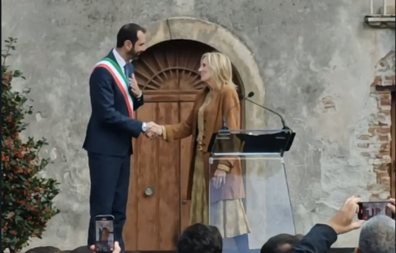 Sul palco estremamente sobrio (un agrifoglio e una piccola composizione di sassi, agrumi e grano), allestito in piazza Sant’Antonio Abate, secondo un protocollo molto più rilassato di quanto le circostanze potessero fare immaginare dato lo spiegamento di sicurezza, a fare gli onori di casa è stato il sindaco Federico Basile, che ha pronunciato un breve discorso ringraziando Jill Biden della visita e rimarcandone le origini, “che i suoi antenati hanno tramandato ed esportato in America”.