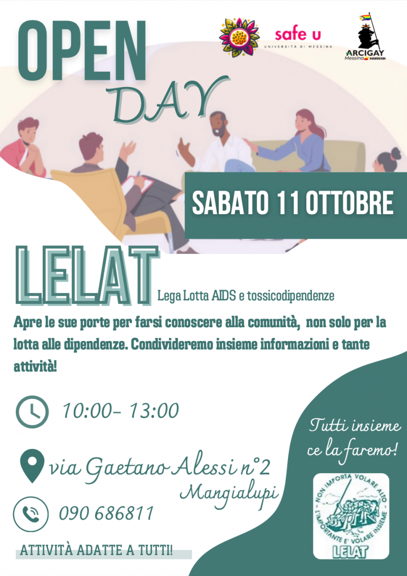 MESSINA. In occasione del suo 35° anniversario, la Comunità Terapeutica Le.L.A.T. di Messina apre le porte alla città per una giornata di incontro e condivisione. L’evento, in programma sabato 11 ottobre dalle 10.00 alle 13.00 nella sede di via Gaetano Alessi n. 2 del quartiere Mangialupi, offrirà ai cittadini l’opportunità di conoscere da vicino la realtà della Comunità e i suoi spazi, attraverso momenti informativi e attività aperte a tutti.