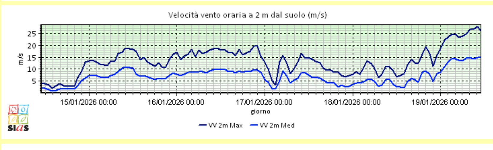 Il fenomeno più rilevante, a Messina, è e sarà il vento: la stazione di rilevazione del Sias, il servizio informativo agrometeorologico siciliano, ha calcolato raffiche di massima velocità vicina ai cento kmh (27 metri al secondo, tra “burrasca forte” e “tempesta” nella classificazione Beaufort) nella stazione di Curcuraci, in territorio aperto, a due metri dal suolo, con una media del vento di 60 kmh.