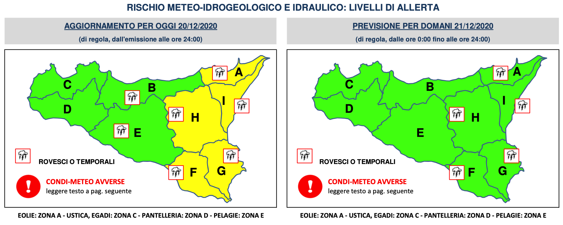 Già in serata e per le successive 24-36 ore si prevedono precipitazioni sparse anche a carattere di rovescio o temporale, specie sulle aree meridionali e ioniche. I fenomeni saranno accompagnati da rovesci di forte intensità, frequente attività elettrica e forti raffiche di vento.