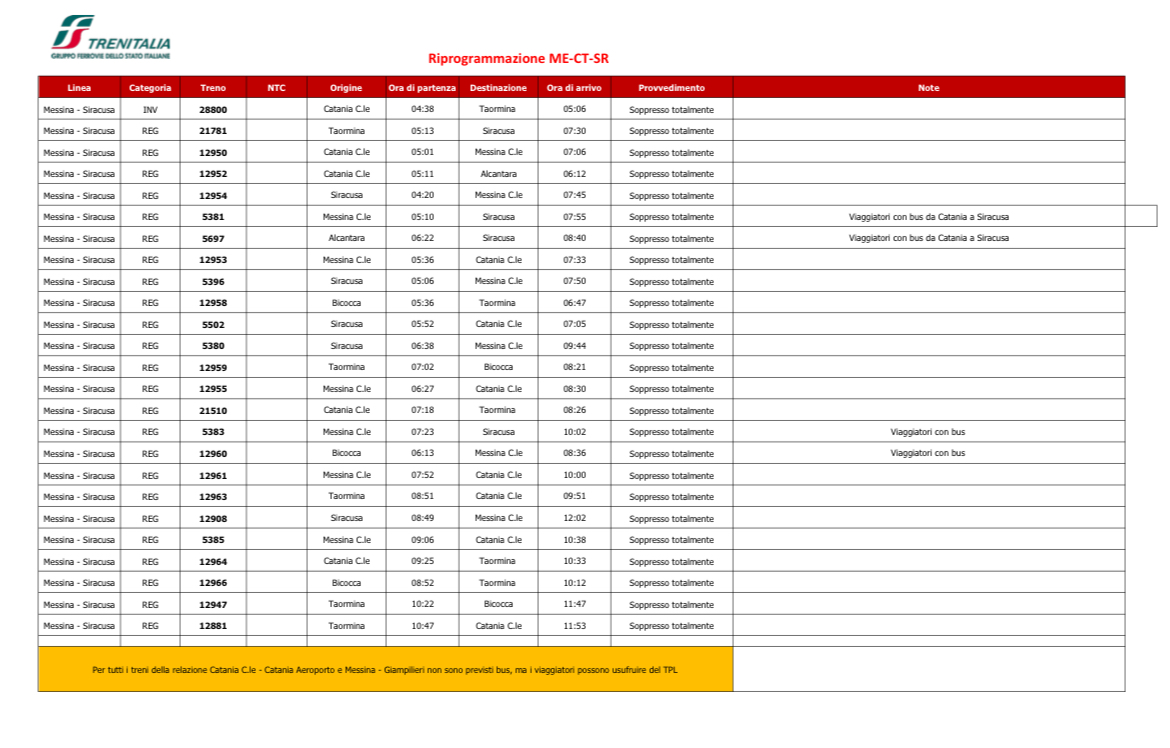MESSINA. I danni del ciclone Harry si ripercuotono anche sulle ferrovie, con l’interruzione di tutti i treni fra Catania e Siracusa. Le mareggiate delle scorse ore hanno infatti danneggiato anche le rotaie (come nella zona di Itala). Sospesa attualmente anche la metroferrovia.