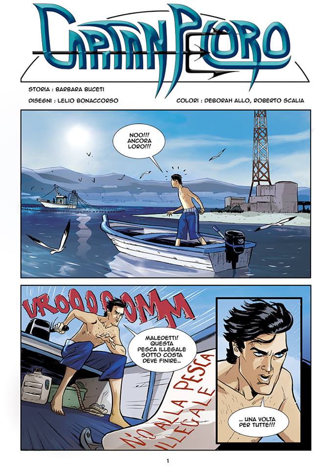 UN NUOVO SUPEREROE. A raccontare un eroe contemporaneo, ma che affonda le radici nel mito, è Lelio Bonaccorso, che ha dato forma all’idea di Nello Cutugno (presidente della Pro Loco Capo Peloro, che organizza l’evento) e alle storie di Barbara Buceti grazie anche ai colori di una coppia di giovani e bravi coloristi, Debora Allo e Roberto Scalia: “Ho sviluppato Capitan Peloro partendo dai supereroi dei fumetti, anche se la base sono i nostri miti dello Stretto, come Nettuno, Colapesce e, appunto, Peloro. Non è stato complicato, perché l’iconografia è classica così come, classici, sono altri elementi, ad esempio il blu del mare e il tridente di Poseidone. Ho però deciso di inserire anche un tocco di modernità: una tavola da surf che richiama Silver Surfer, eroe di riferimento insieme ad Acquaman”.