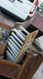 Malgrado la “task force” di Messinambiente e lo sforzo di offrire, agli sgoccioli della sua vita, un servizio degno di una città europea, rispondendo con celerità alle segnalazioni dei cittadini, l’inciviltà del messinese medio continua infatti a imperversare in barba alle regole più elementari del vivere civico. A fare la loro comparsa, nel variegato mobilificio cittadino a cielo aperto, ecco quindi resti di porte, pezzi di vetro, scaffali, cassetti, una cassa piena di vecchie lampadine colorate, un inginocchiatoio e persino un candeliere, tutti accatastati a ridosso di un cassonetto e sul marciapiede di una delle principali arterie cittadine. Arredi provenienti evidentemente da una chiesa che adesso si trovano riversi in terra a poche decine di metri dal Sacrario.