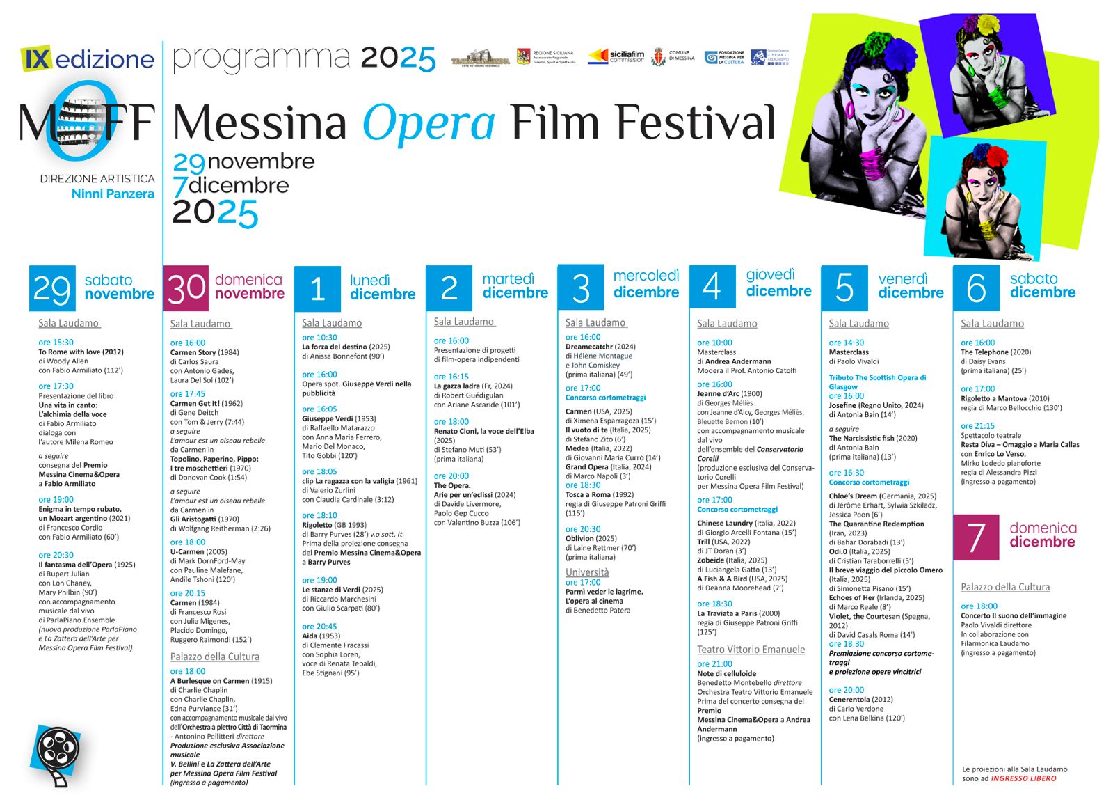 Ecco il dettaglio degli eventi del Messina Opera Film Festival: