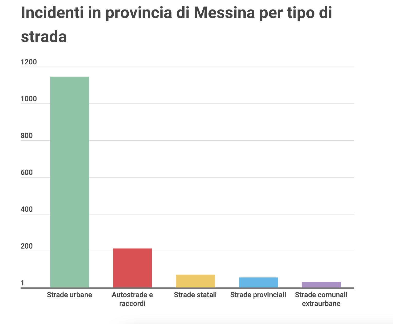 Ma di preciso, quali sono le strade della provincia messinese interessate dagli incidenti? Dei 1.520 sinistri, 214 si sono verificati in autostrade e raccordi, 71 in strade statali, 57 in quelle provinciali, 31 in strade comunali extraurbane e ben 1.147 in strade urbane.