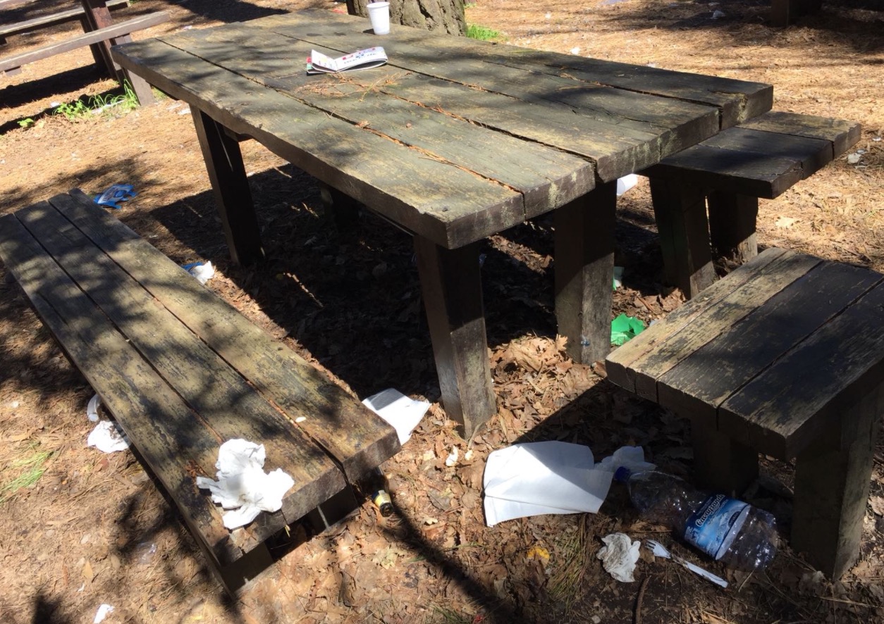 È solo incamminandosi verso Dinnammare che i resti dei picnic si fanno più evidenti. Ad essere stracolma di ogni genere di rifiuti, in particolare, è una delle aree attrezzate più grandi e pianeggianti, in grado di ospitare fino a 350 avventori sui tavolini in legno in prossimità dei punti cottura per arrostire alla brace.