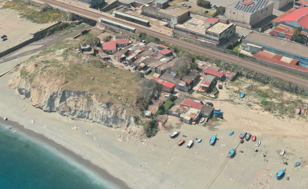 A fare da contraltare ai quartieri del lusso, nell’immagine e nel video sotto, il cosiddetto “rione” dei Cavaddari, come lo chiamano in molti. All’altezza del viale Gazzi, in direzione dello Stadio Celeste, nel “cuore oscuro” di Maregrosso, dove sorge un vero e proprio quartiere popolare incastonato fra la ferrovia e una collinetta di roccia che protegge i casolari dalle intemperie. Qui, in una zona accessibile solo da un piccolo sottopassaggio accanto a una chiesetta, nel corso dei decenni ha preso forma sulla spiaggia un assembramento di baracche con i tetti in lamiera, rimessaggi di barche e stalle, ma anche vere e proprie abitazioni accatastate l’una sull’altra (a febbraio del 2019 ci vivevano 8 nuclei familiari)
