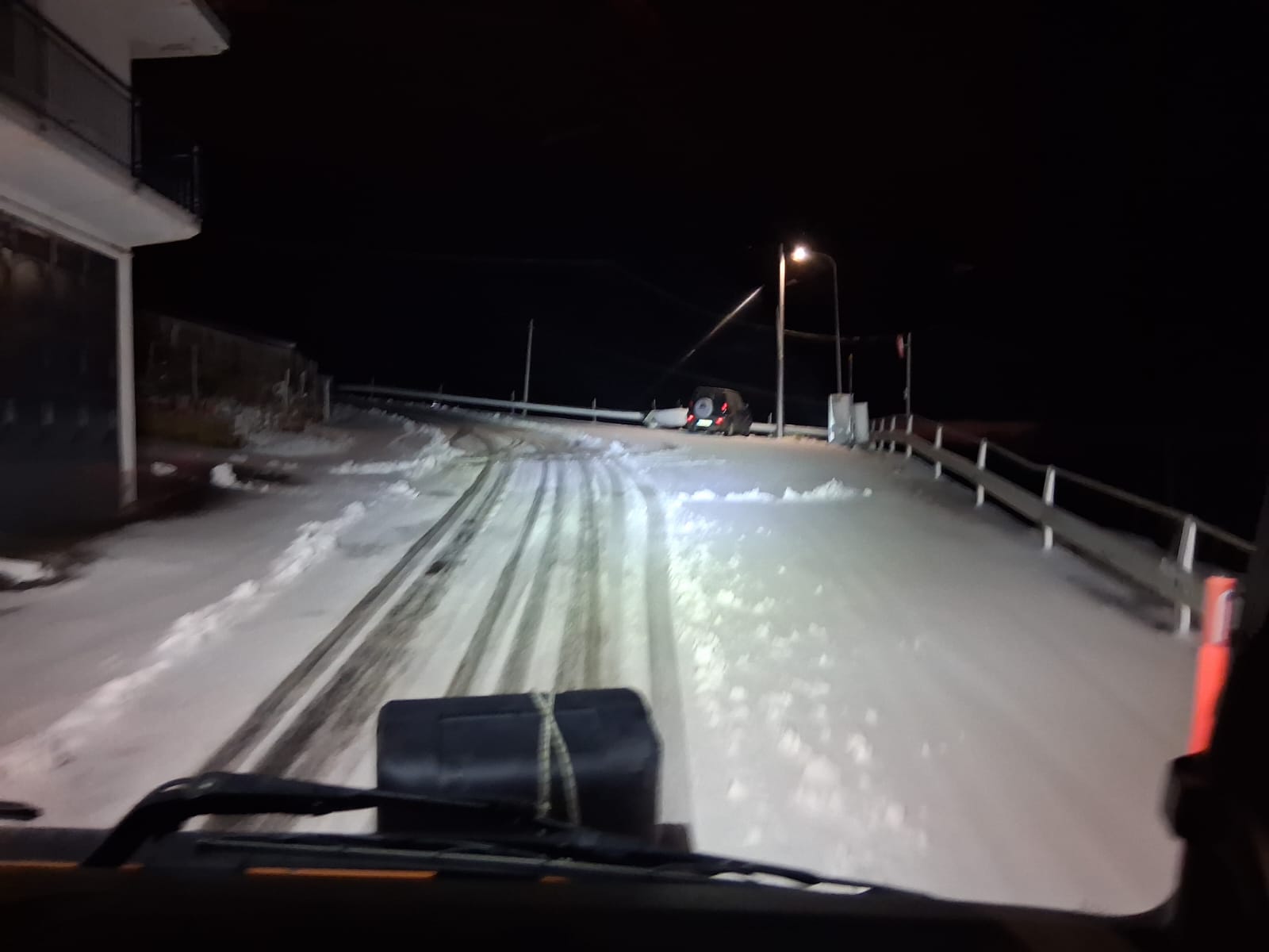 Un primo e importante intervento è stato effettuato lungo la Strada Provinciale 168 Caronia–Capizzi, arteria strategica per il collegamento tra i centri montani e la costa tirrenica. Le intense precipitazioni nevose avevano reso difficoltosa la circolazione, ma grazie all’azione tempestiva dei mezzi è stato possibile ripristinare condizioni di transito accettabili e in sicurezza.