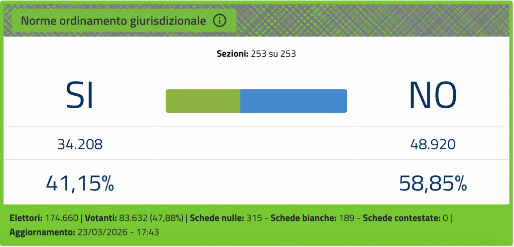 In città si è recato alle urne il 37,12% degli aventi diritto: la percentuale nazionale è del 46,07%.