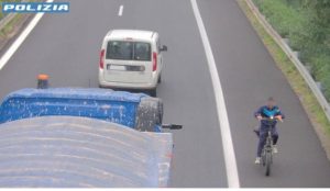 In bici elettrica, contromano, sulla A18: fermato un 23enne