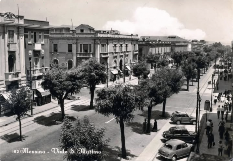 Poi, però, accade qualcosa che non torna. Sui social (la pagina “Foto in soffitta” di Facebook) appare un’immagine: “Messina, 1957, viale San Martino”. Un’immagine che racconta il viale “ereditato” dalla città preterremoto e rispettato dalla ricostruzione, ovvero il boulevard con due filari di alberi, a destra e a sinistra le corsie del tram e, al centro, una carreggiata che, un tempo pedonale, aveva ormai lasciato spazio alle vetture.