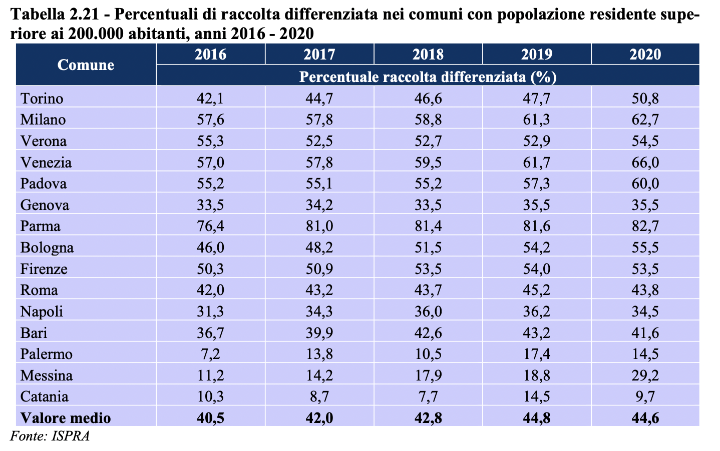 Nel rapporto nazionale Ispra, inerente i numeri e gli obiettivi riguardo la raccolta differenziata in tutti i comuni e nelle maggiori province d’Italia, infatti, per i dodici mesi del 2020 il comune di Messina sarebbe passato da un 18,8% nel 2019 al 29,2% di tutto lo scorso anno (dato simile a quello fornito da Palazzo Zanca), con un aumento di oltre il 10% di raccolta differenziata in un anno.