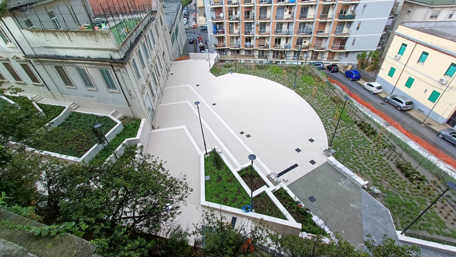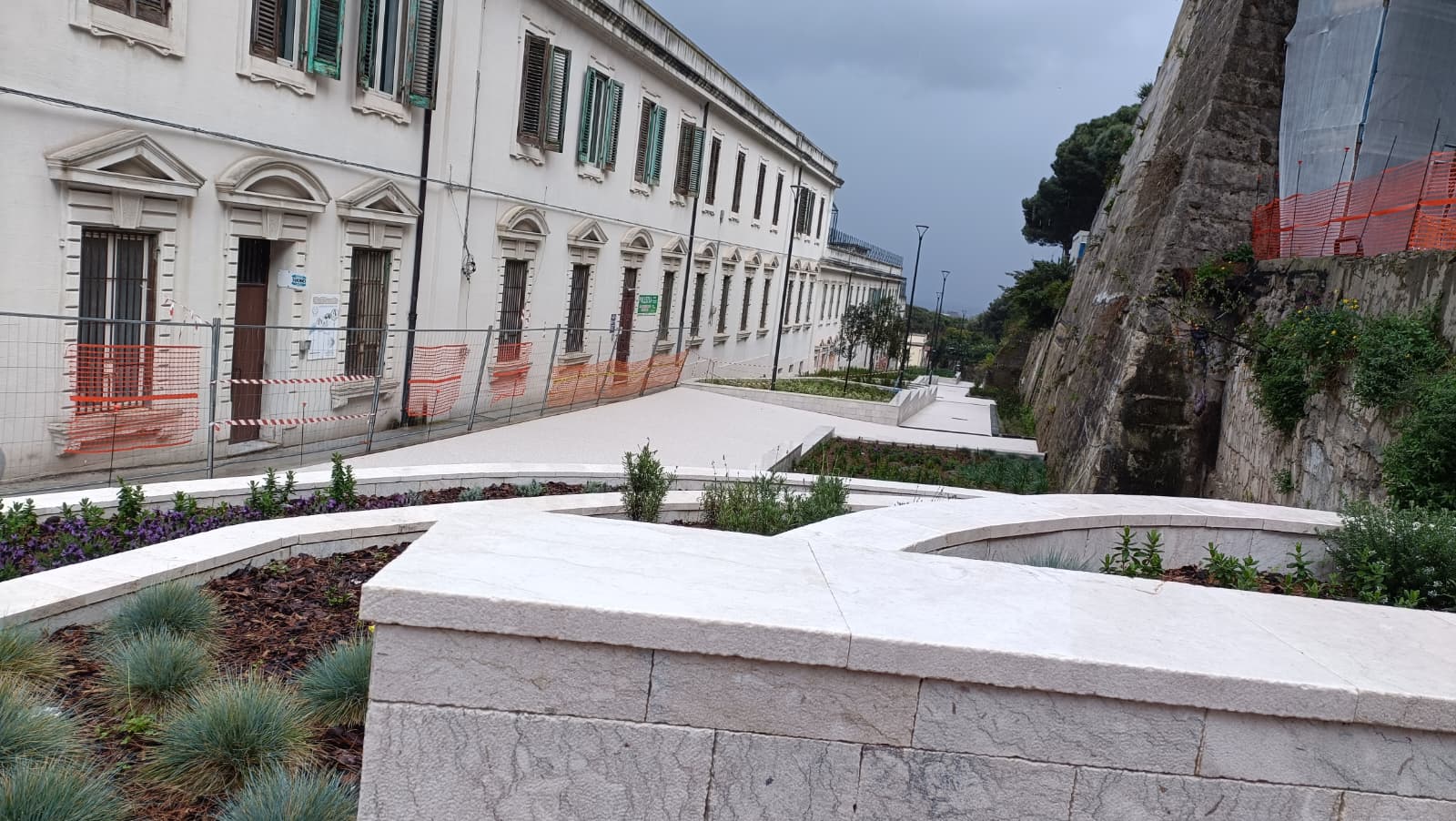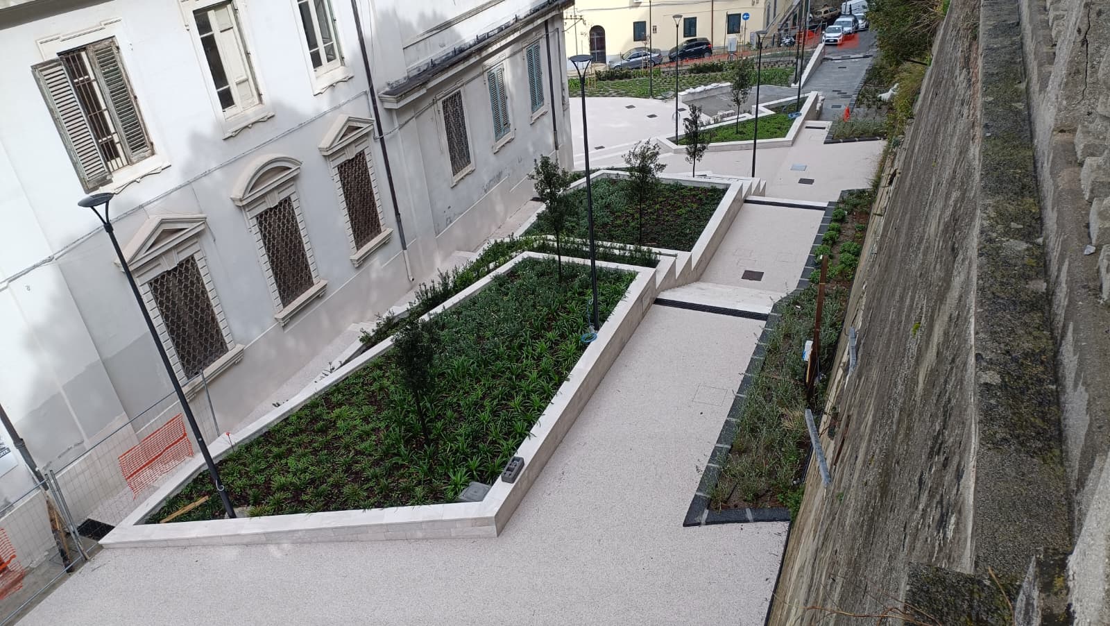 MESSINA. Prende ufficialmente forma il nuovo giardino realizzato in via Del Macello Vecchio, alle spalle dell’Istituto Buon Pastore (sede della Soprintendenza ai Beni Culturali di Messina): dove fino a ottobre del 2022 persistevano delle baracche addossate alle storiche mura di Carlo V, nell’ambito degli interventi di rigenerazione delle aree sgomberate, adesso fra il viale Principe Umberto e via Giacinto sorge una piazzetta che culmina all’entrata della chiesa del Buon Pastore. Un belvedere da 1,2 milioni di euro, con tanto di anfiteatro, intitolato a Caravaggio (e nella quale si vuole collocare anche una statua di Michelangelo Merisi).