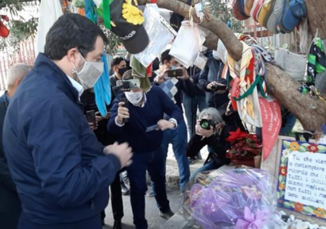 Salvini arrivato a Palermo questa mattina si è recato in Via D’Amelio, dove ha deposto un mazzo di fiori sotto l’albero commemorativo della strage del 19 luglio 1992 in omaggio a Paolo Borsellino e gli uomini e le donne della scorta.