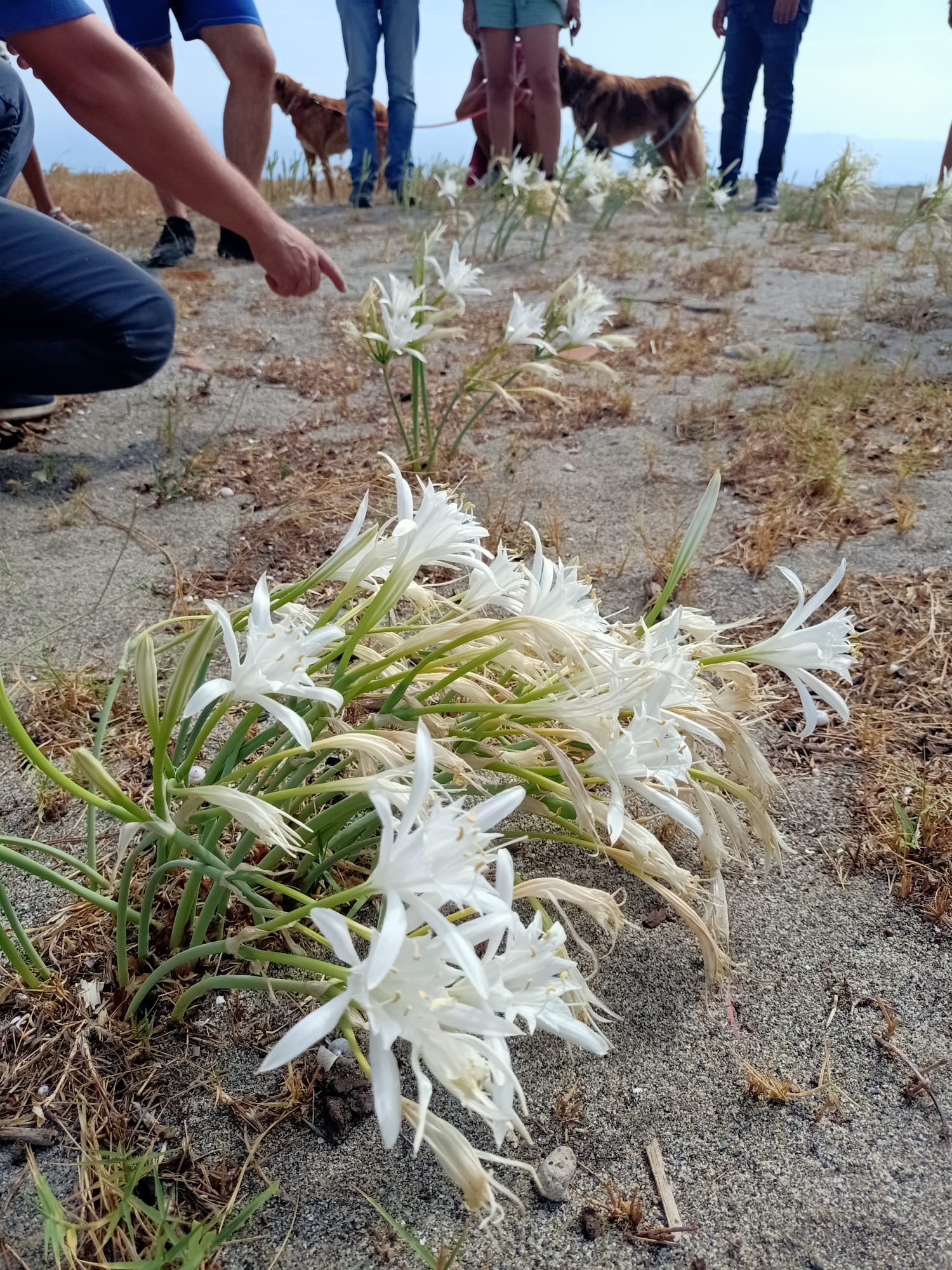 Il gruppo ha poi raggiunto la spiaggia di Mili Moleti e Galati, dove sono state osservate diverse specie rare di flora psammofila e ammirati tappeti di fiori bianchi di Giglio Marino, che cresce ormai soltanto in pochissime zone del litorale cittadino.