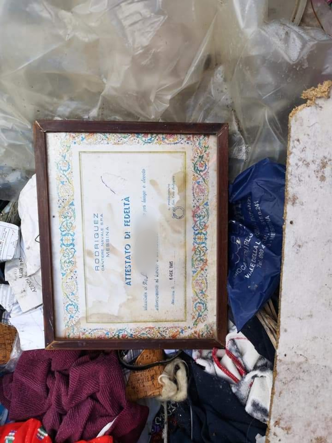 Dalle foto si vedono interi armadi smantellati, vestiti, sedie e anche un attestato di fedeltà e un libretto di lavoro.