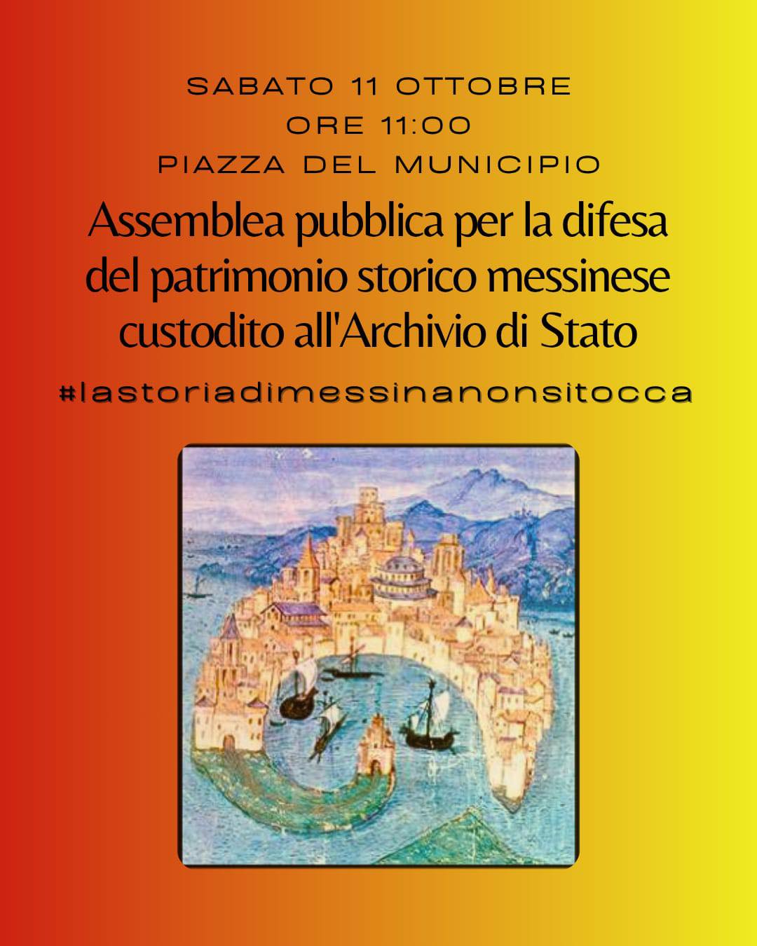 MESSINA. Un’assemblea pubblica a Piazza Municipio (piazza Unione Europea), “per dire con fermezza che ci opponiamo a questa soluzione e che la storia di Messina non si tocca”. È l’appuntamento lanciato per sabato 11 ottobre, alle 11, da un gruppo di cittadini, tra cui il noto fumettista messinese Lelio Bonaccorso, dopo la notizia del trasferimento dell’Archivio di Stato di Messina (qui l’articolo).