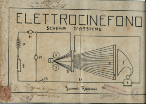 Trascorsi gli anni della guerra, il 9 febbraio 1921, dopo aver perfezionato l’invenzione, l’“Elettrocinefono”, presentò e depositò presso la Prefettura di Genova i suoi brevetti.