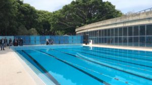 Il tuffo inaugurale di De Luca nella piscina di Villa Dante, in perfetto stile olimpionic…no,
